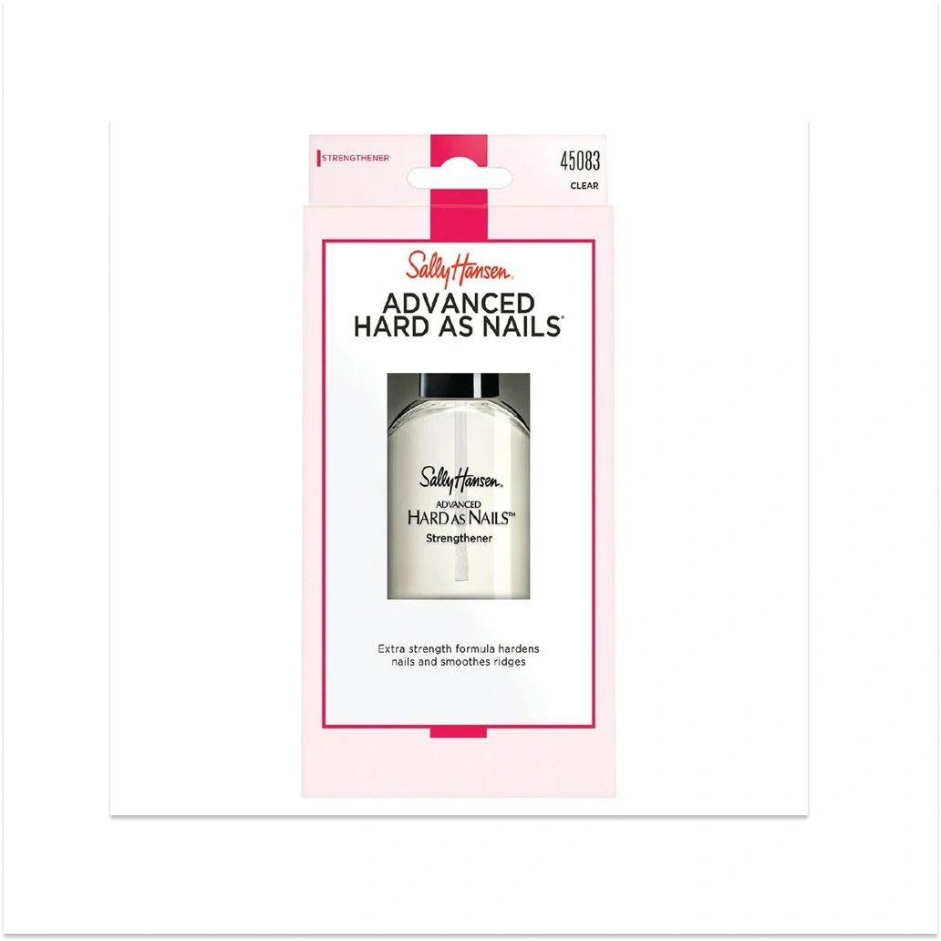Sally Hansen Hard As Nails - Clear is an extra-strength nail treatment designed to harden and protect weak, fragile nails. First launched in 1957, it remains a "drugstore staple" for preventing chipping, splitting, and cracking.